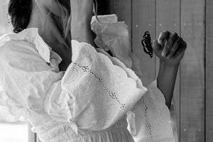 We love working with local Australian artists to bring our unique prints to life. Recently artist Megan Cochran illustrated doves for our dreamland collection and we collaborated with Blue Mountains artist Eloise who hand-painted Australian botanicals for our wildflower print. Discover the print stories in the 'inspirations' section of each dress.